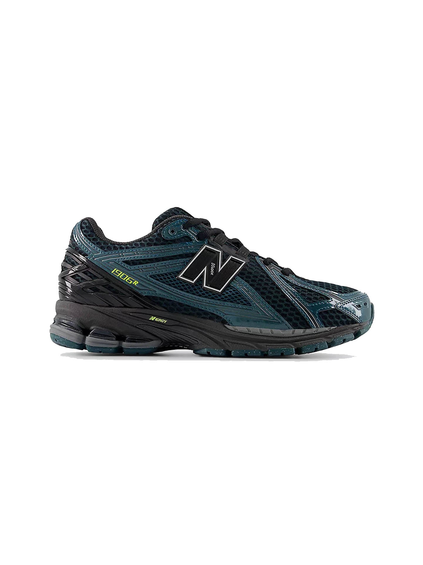 La tomaia delle New Balance 1906 è realizzata in mesh a fori aperti per una traspirabilità ottimale, arricchita da rivestimenti sintetici curvilinei che esaltano l’estetica tecnica e futuristica tipica dei primi anni 2000.